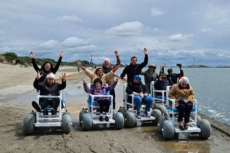 On the beach in a wheelchair with caterpillar tracks. Science fiction? We went for a nice beach walk with foundation De Zonnebloem.